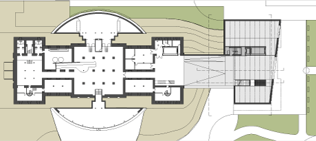 Der Gebäudeentwurf arbeitet mit den abstrakten räumlichen Ordnungen des Stadtraums und entwickelt sich darüber zum eigenständigen Objekt. Das städtebauliche Prinzip zueinander versetzter Achsen, die jeweils ein Gegenüber von Raum und Objekt bilden, wird an der offenen Verbindung zwischen Quartier und Park aufgelöst. Im Inneren wird die durchlaufende Längsachse aus dem UG des Altbaus in das EG des Neubaus verlängert und auf das Niveau des Parks geführt. Das Piano Nobile wird im 1.OG des Entwurfes neu interpretiert. Ein umlaufendes Fries aus gefalteten Aluminium-Elementen überformt hier die sonst so ruhige Materialität und eröffnet Blicke zur Stadt. HAHOH Haas Heckmann Architekten |